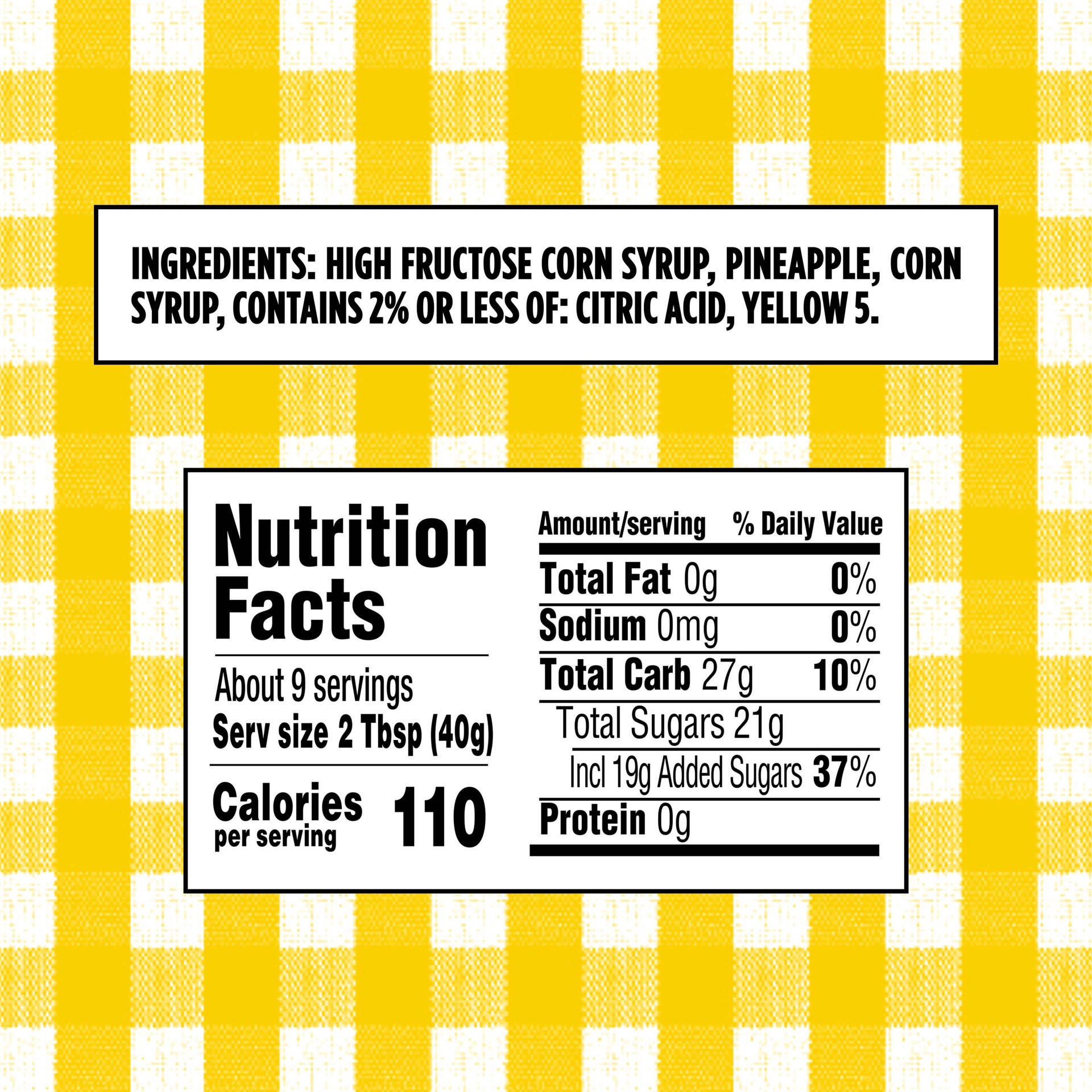 High Fructose Corn Syrup, Pineapple, Corn Syrup, Contains 2% Or Less Of: Citric Acid, Yellow 5.
