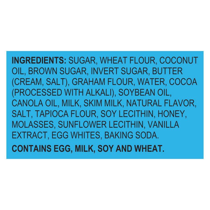 Sugar, Wheat Flour, Coconut Oil, Brown Sugar, Invert Sugar, Butter (Cream, Salt), Graham Flour, Water, Cocoa (processed with Alkali), Soybean Oil, Canola Oil, Milk, Skim Milk, Natural Flavor, Salt, Ta…