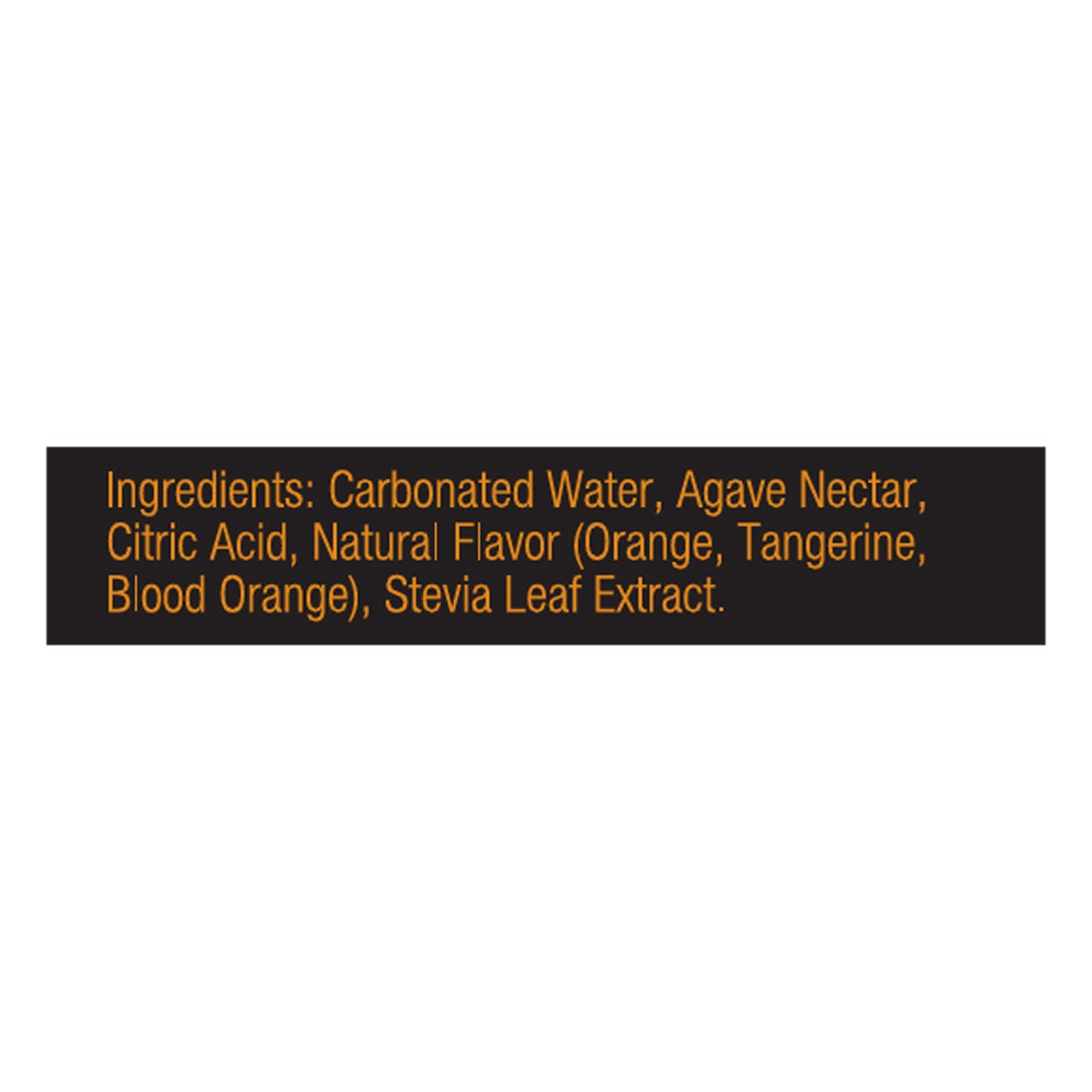 Carbonated Water, Agave Nectar, Citric Acid, Natural Flavor (Orange, Tangerine, Blood Orange), Stevia Leaf Extract.