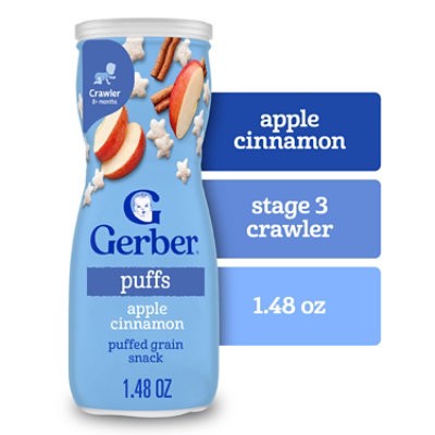 Gerber Grain & Grow Puffs Apple Cinnamon Snacks For Baby In Canister - 1.48 Oz