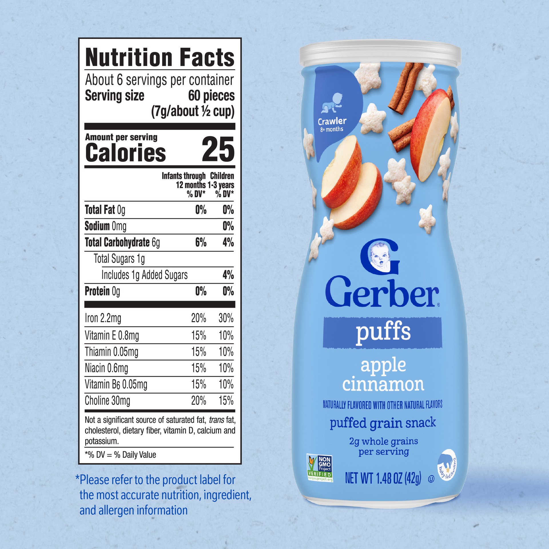 Gerber Grain & Grow Puffs Apple Cinnamon Snacks For Baby In Canister - 1.48 Oz