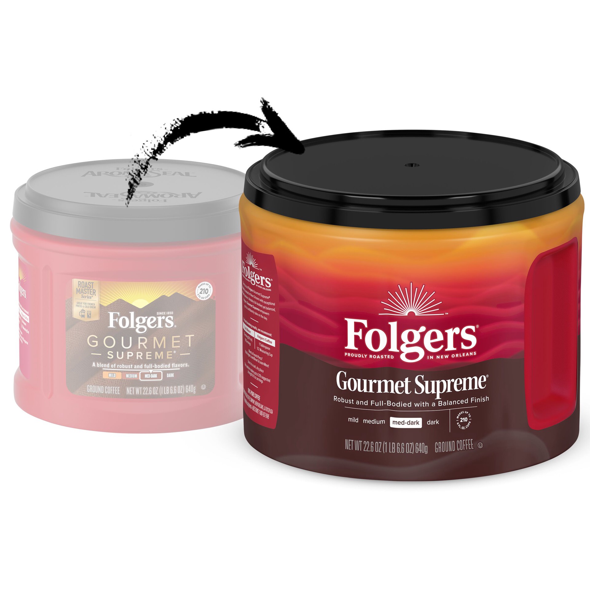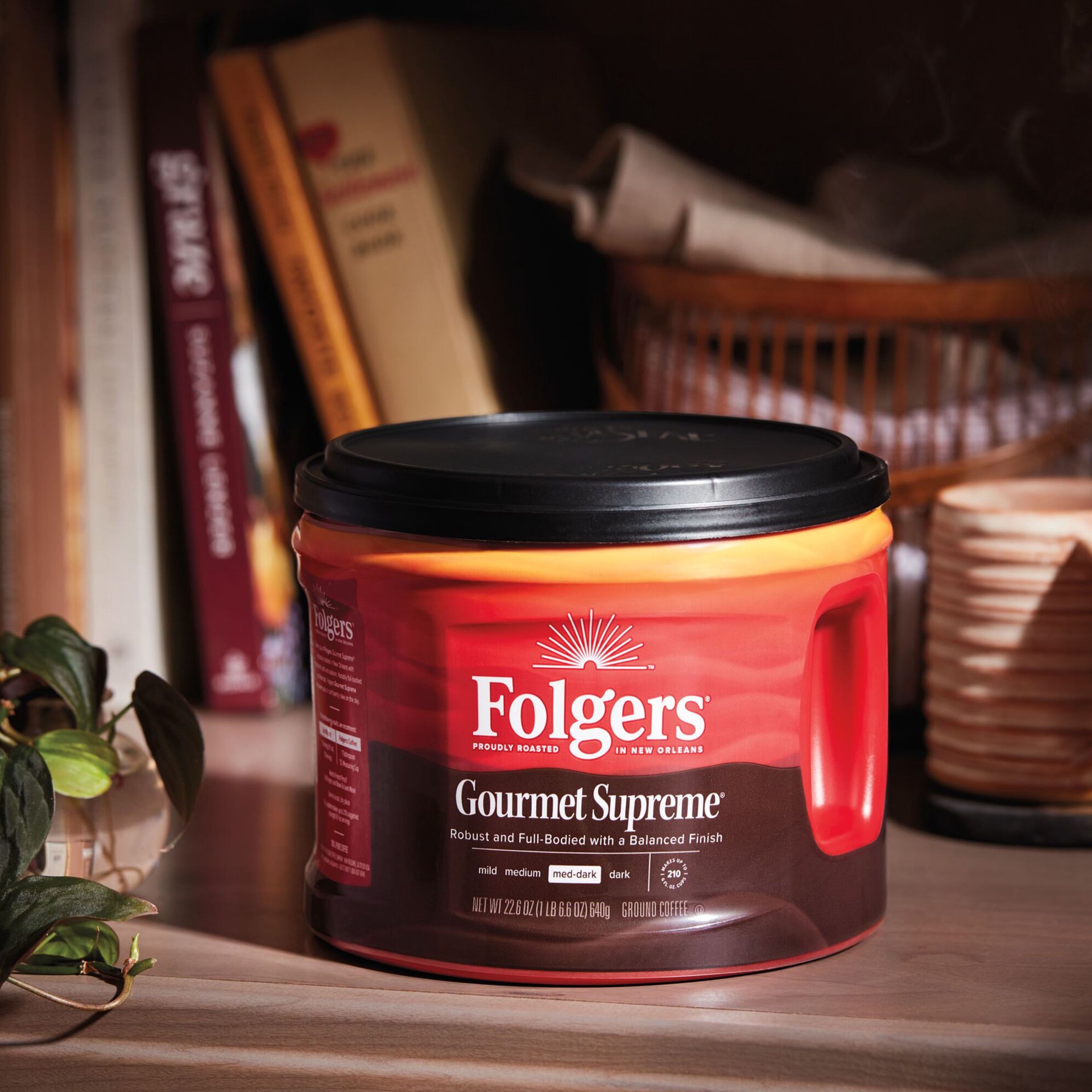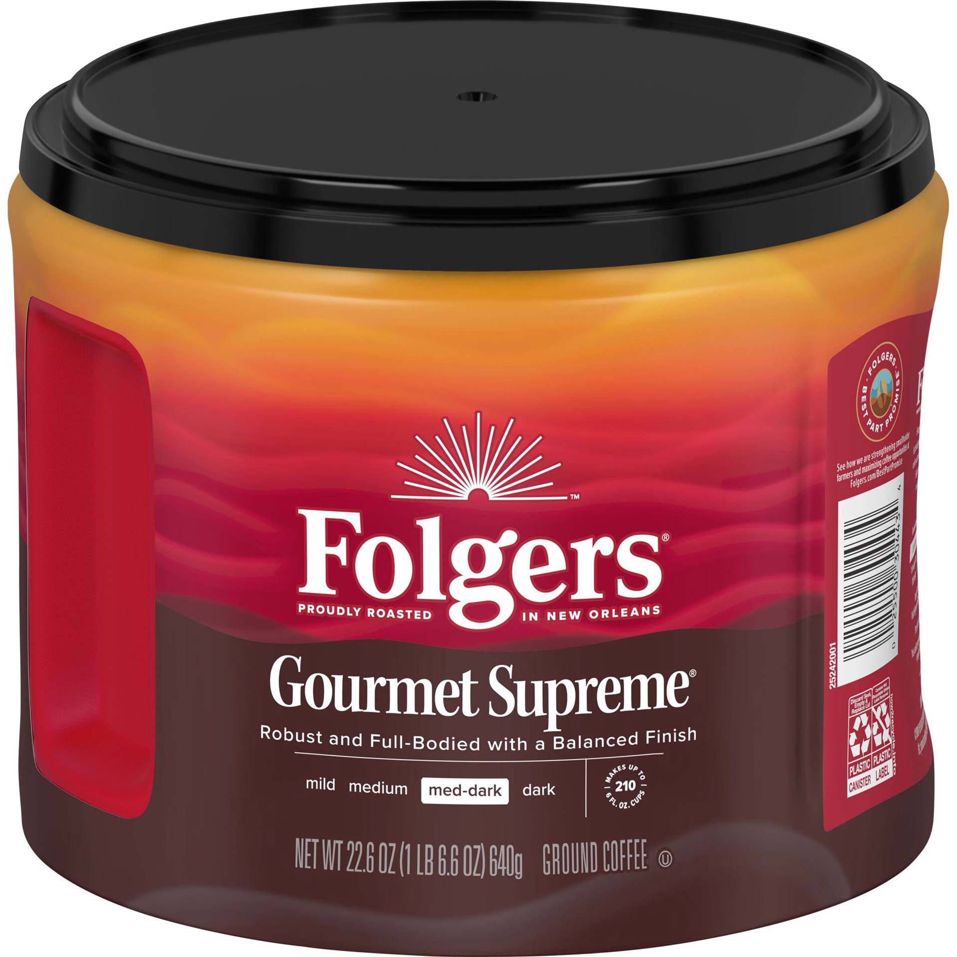 - Contains one (1) 22.6-oz. canister of Folgers Gourmet Supreme ground coffee