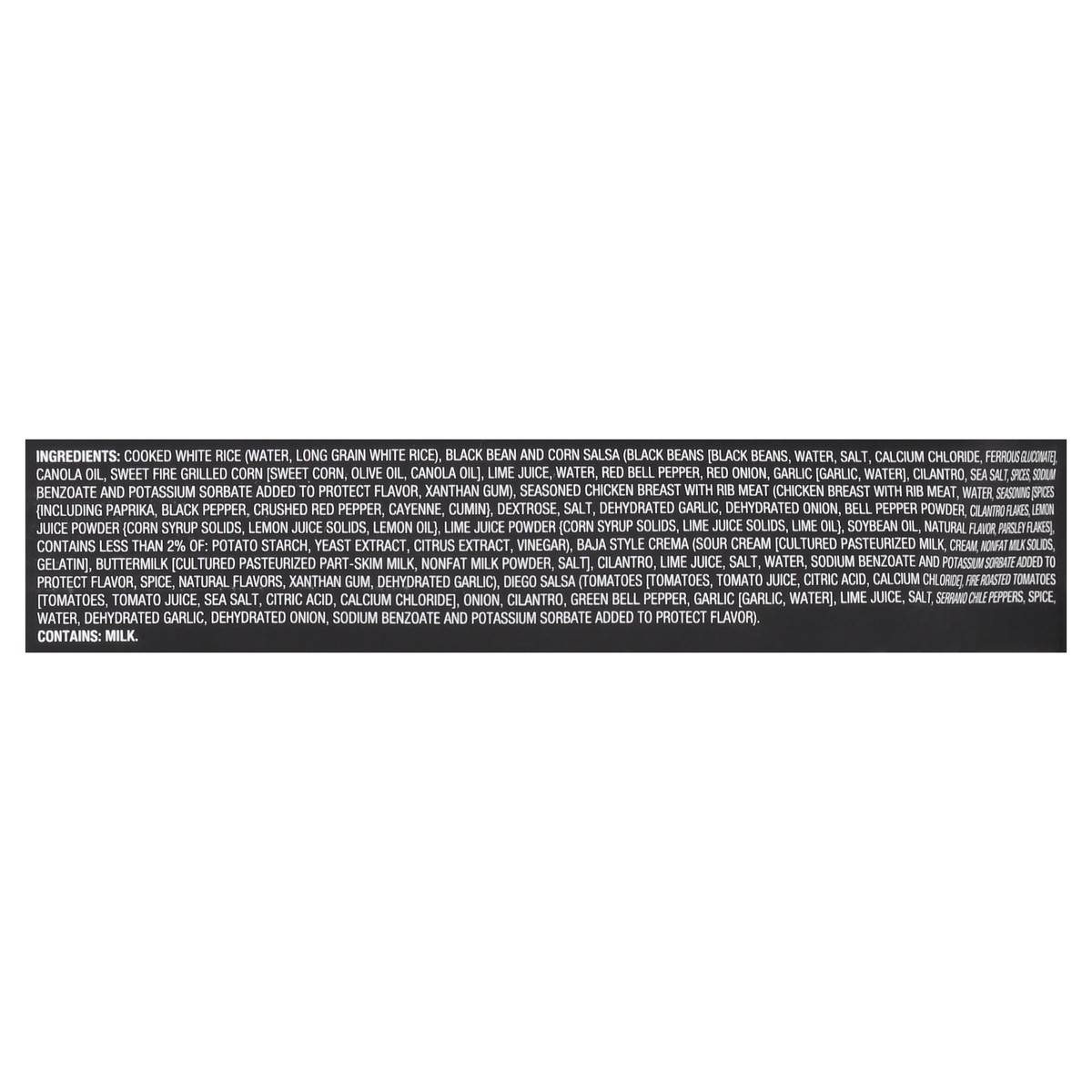 Cooked White Rice (Water, Long Grain White Rice), Black Bean and Corn Salsa (Black Beans [Black Beans, Water, Salt, Calcium Chloride, Ferrous Gluconate], Canola Oil, Sweet Fire Grilled Corn [Sweet Cor…
