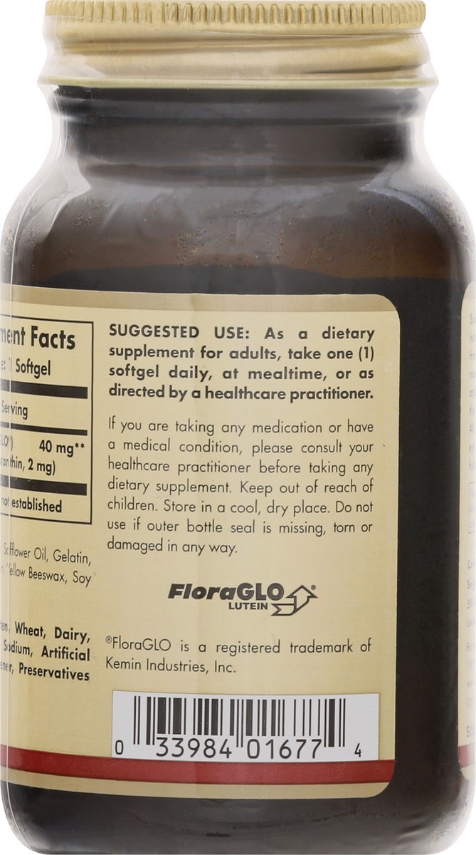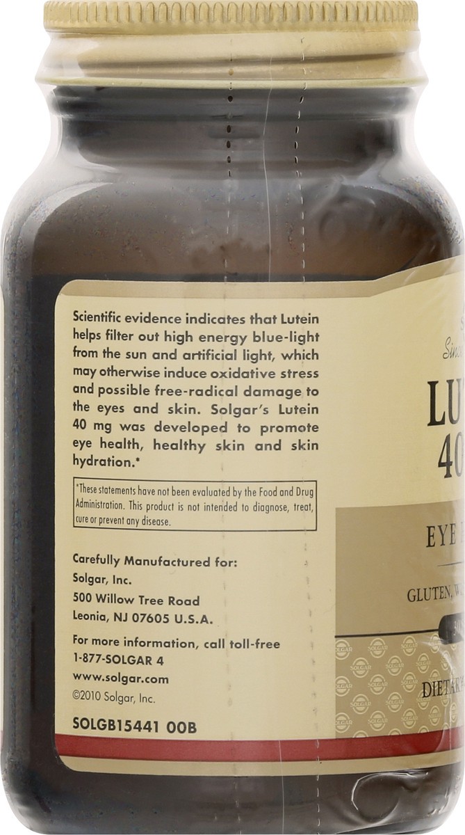 Dietary Supplement. Gluten, wheat & dairy free. Free of: gluten, wheat, dairy, yeast, sugar, sodium. Since 1947. Eye health. Scientific evidence indicates that Lutein helps filter out high energy blue…