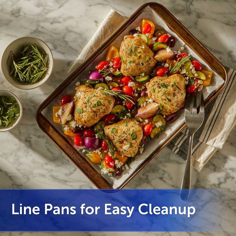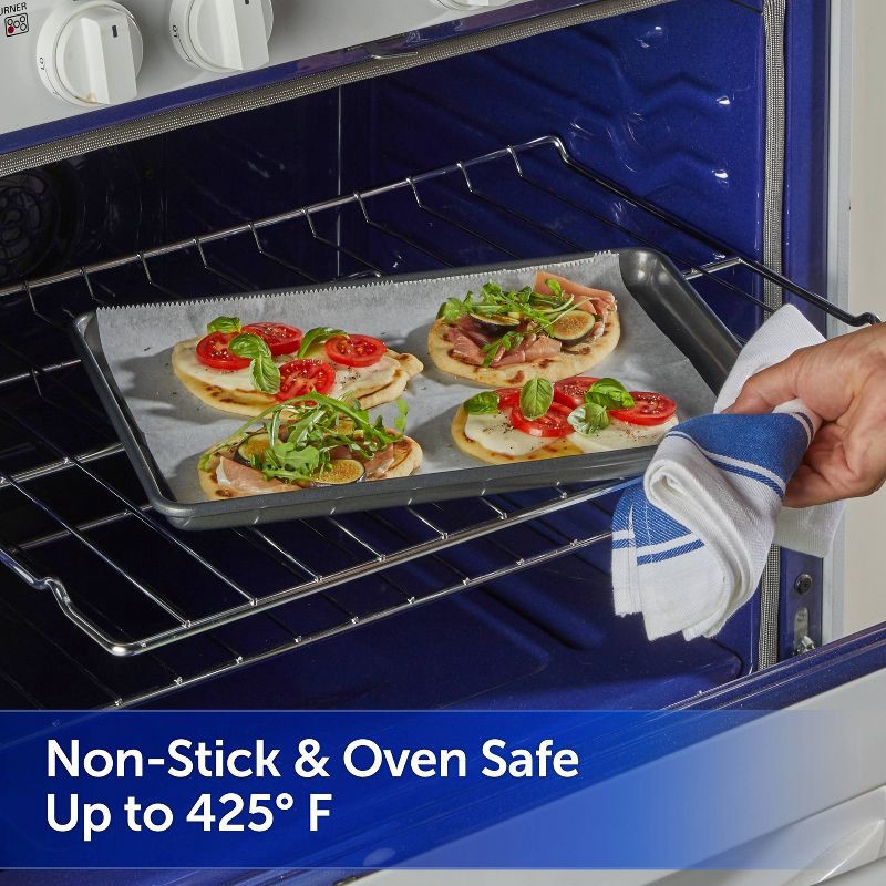 - Oven-Safe to 425 F & Nonstick—Reuse these Reynolds parchment paper sheets up to three times to save your cookie sheets from stuck-on food again and again