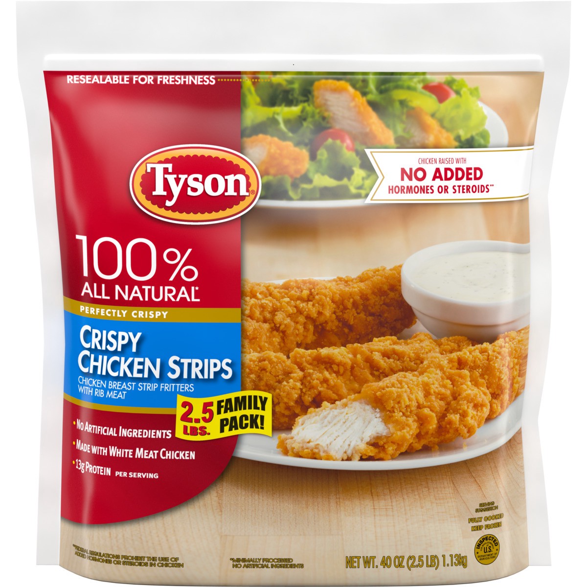 Crispy and classic, Tyson Frozen Crispy Chicken Breast Strips are an easy-to-prepare crowd-pleasing delight. Our fully cooked chicken breast strips are made with 100% all natural* chicken and have no …