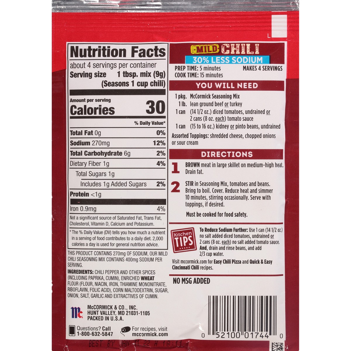 McCormick 30% Less Sodium Chili Mild Seasoning Mix, 1.25 oz