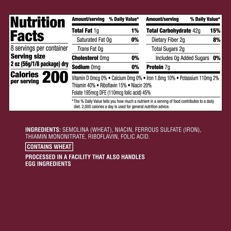 SEMOLINA (WHEAT), NIACIN, FERROUS SULFATE (IRON), THIAMIN MONONITRATE, RIBOFLAVIN, FOLIC ACID.