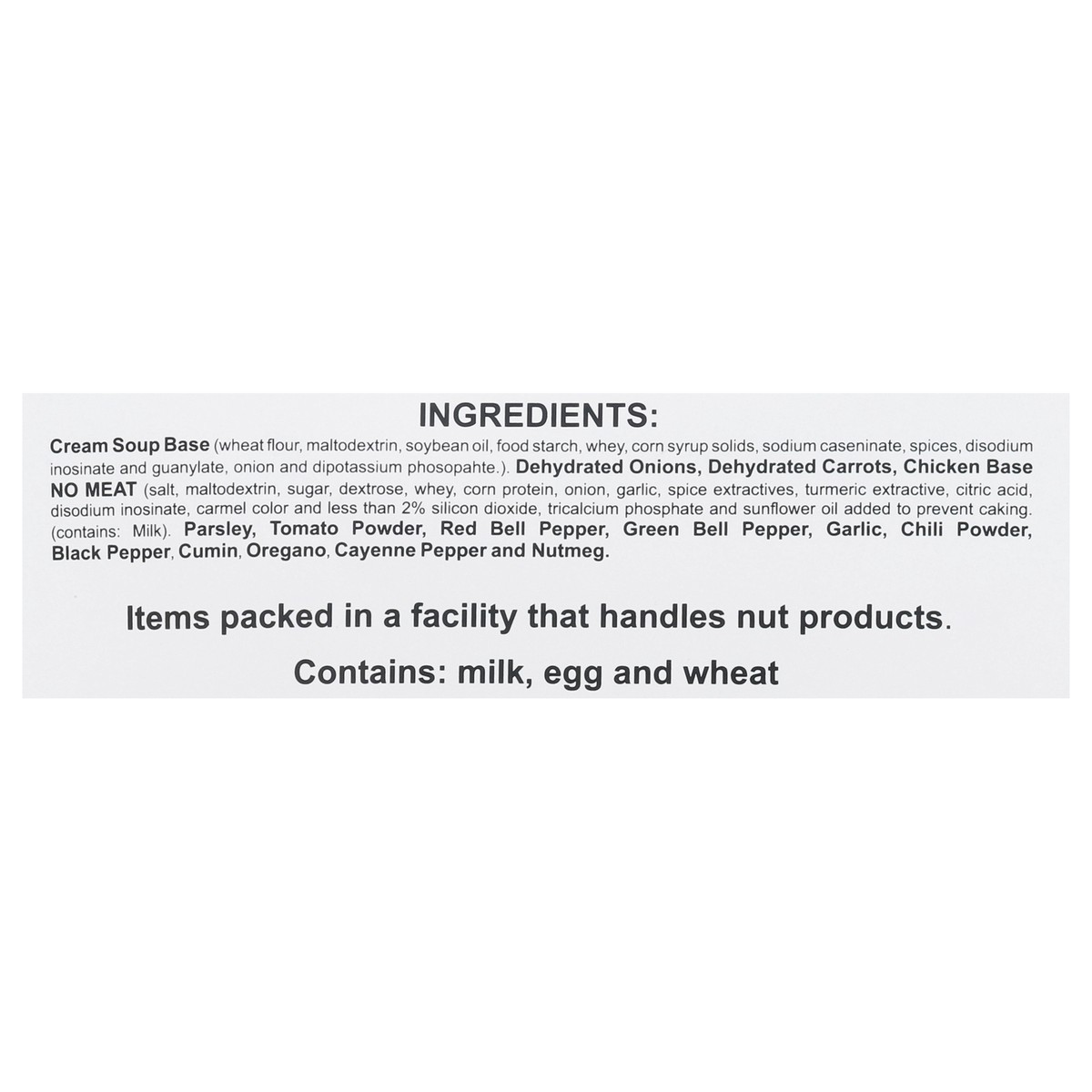 Cream Soup Base (Wheat Flour, Maltodextrin, Soybean Oil, Food Starch, Whey, Corn Syrup Solids, Sodium Caseninate, Spices, Disodium Inosinate and Guanylate, Onion and Dipotassium Phosphate), Dehydrated…