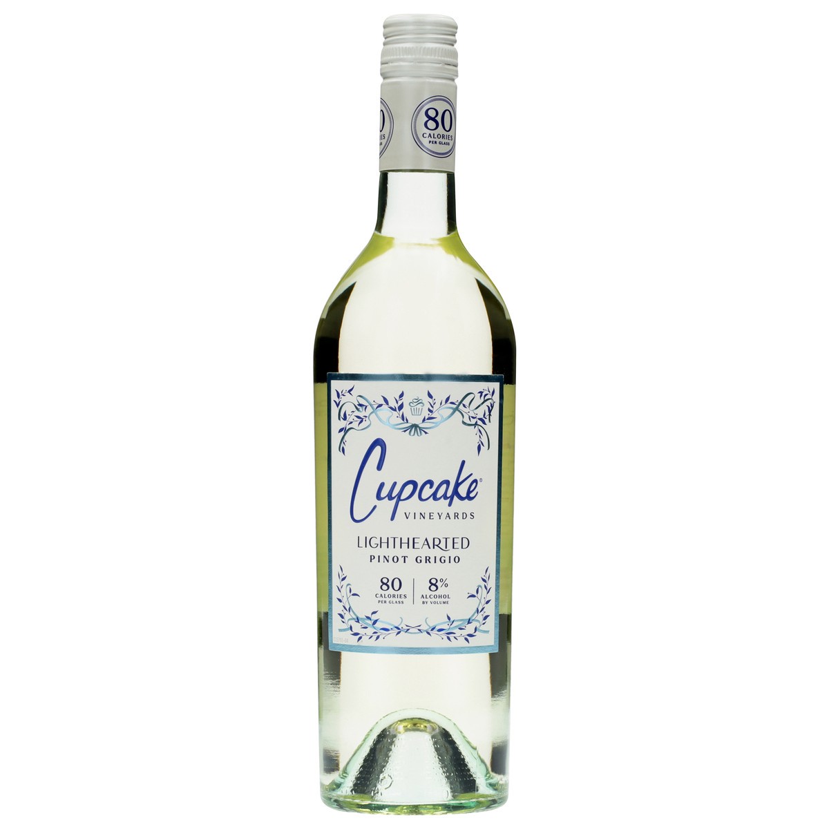 Cupcake Lighthearted Pinot Grigio white wine is sourced from California vineyards and is bursting with notes of zesty lemon, green apple, and apricot. With an 8% ABV and containing only 80 calories an…