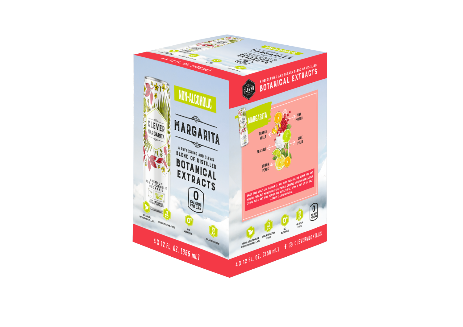 Clever Non-Alcoholic Cocktail Zero Sugar Margarita 4pk