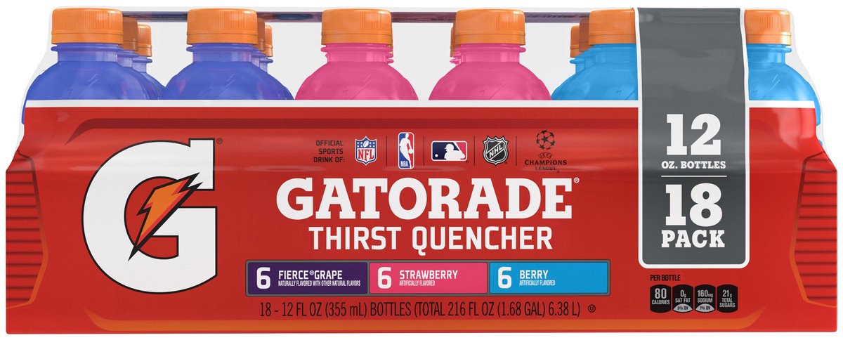 Gatorade Fierce Grape: Water, Sugar, Dextrose, Citric Acid, Natural And Artificial Flavor, Salt, Sodium Citrate, Monopotassium Phosphate, Modified Food Starch, Glycerol Ester Of Rosin, Blue 1, Red 40.…