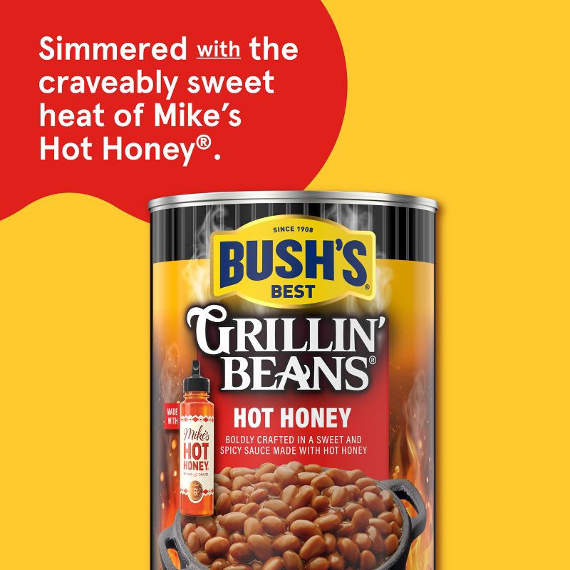 - Bush's Hot honey Grillin' Beans are tender navy beans slow-simmered in a rich, spicy-sweet blend of brown sugar and Mike's Hot Honey