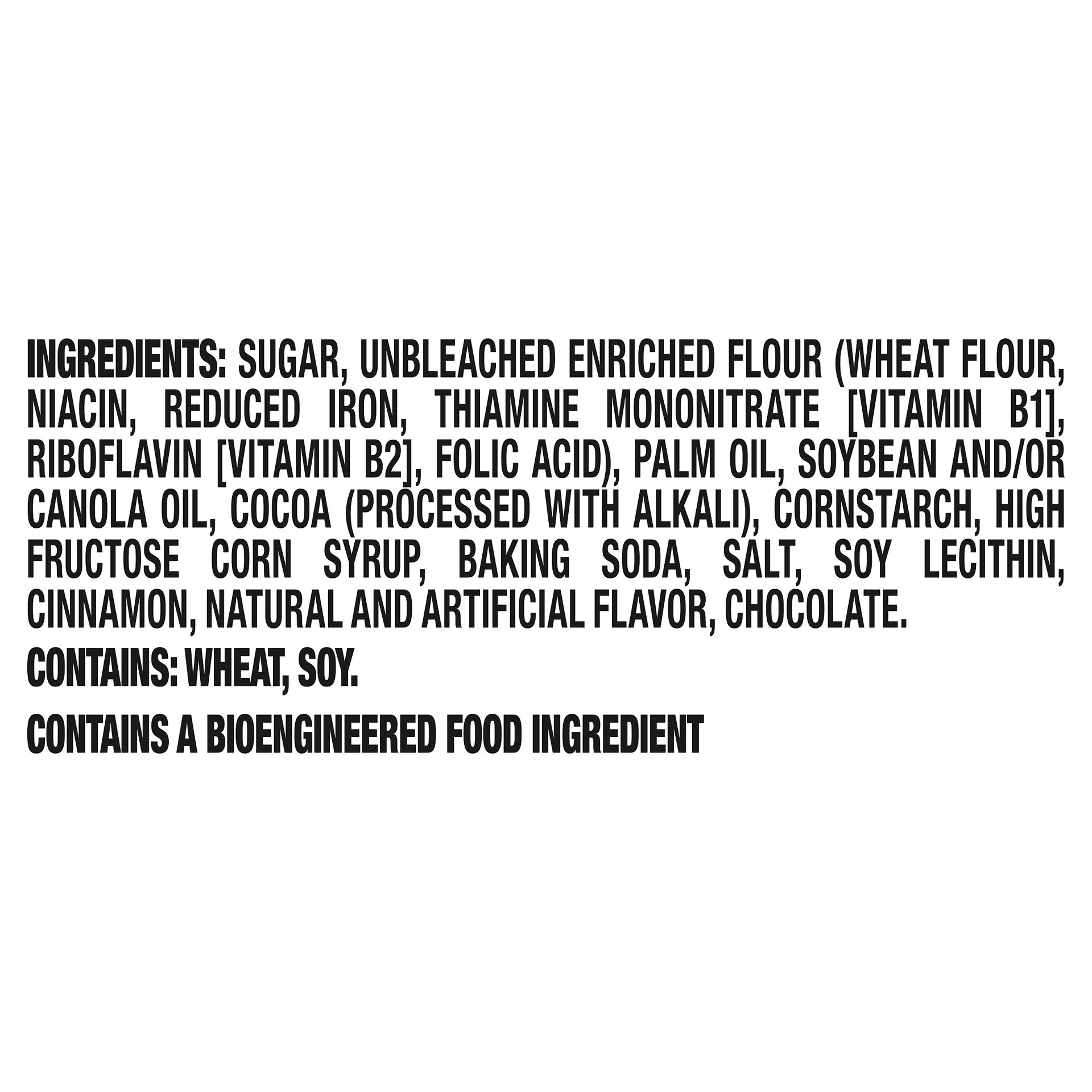 Sugar, Unbleached Enriched Flour (Wheat Flour, Niacin, Reduced Iron, Thiamine Mononitrate [Vitamin B1], Riboflavin [Vitamin B2], Folic Acid), Palm Oil, Soybean and/or Canola Oil, Cocoa (Processed with…