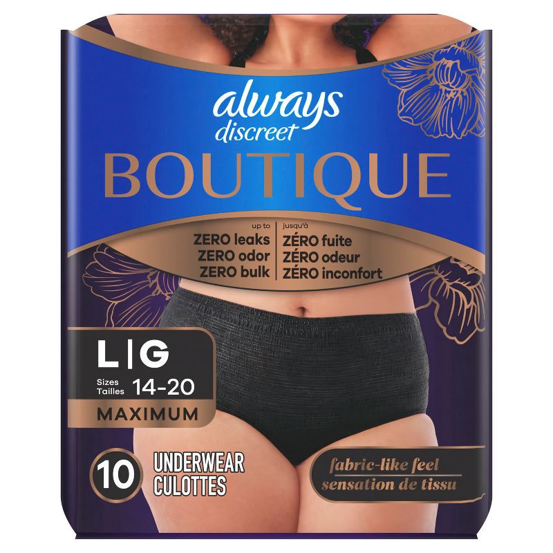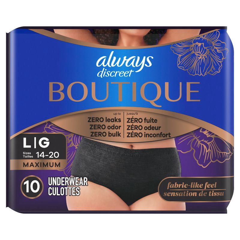 Always Discreet Boutique Adult Postpartum Incontinence Underwear for Women - Black - Large - 10ct