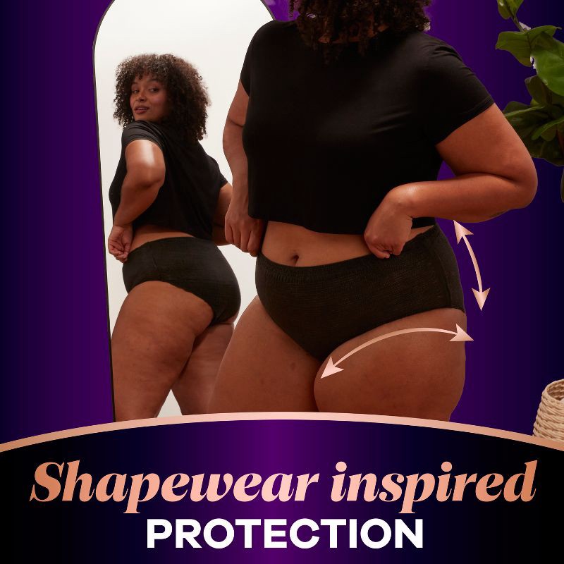 - MAXIMUM ABSORBENCY: provides up to 12 hours of shapewear-inspired incontinence protection