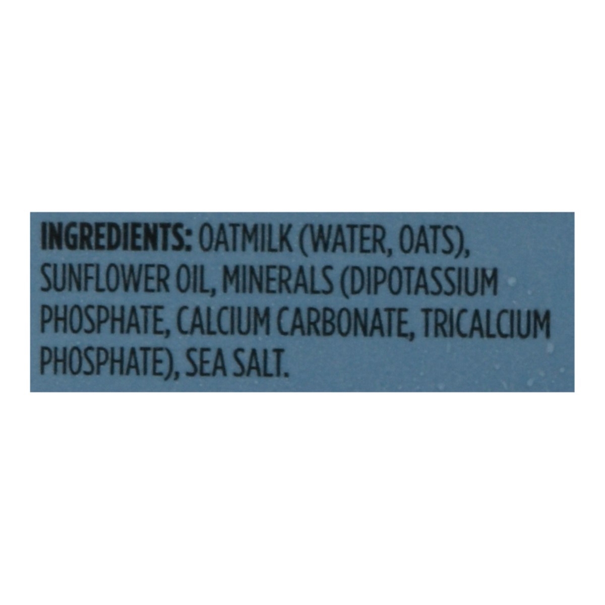 Oatmilk (Water, Oats), Sunflower Oil, Minerals (Dipotassium Phosphate, Calcium Carbonate, Tricalcium Phosphate), Sea Salt.