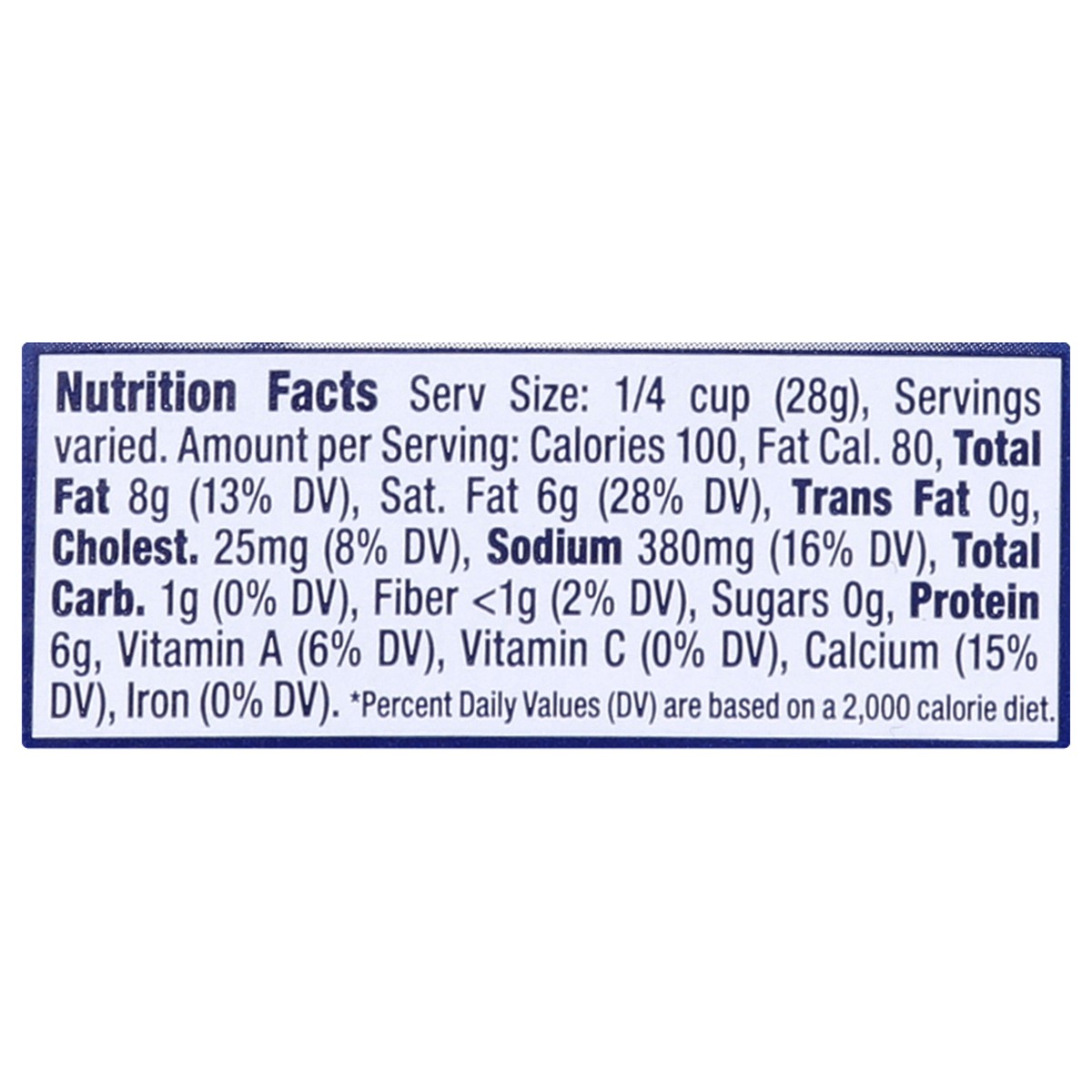 Gorgonzola Cheese (Pasteurized Milk, Cheese Cultures, Salt, Enzymes), Powdered Cellulose to Prevent Caking, Natamycin to Protect Flavor.