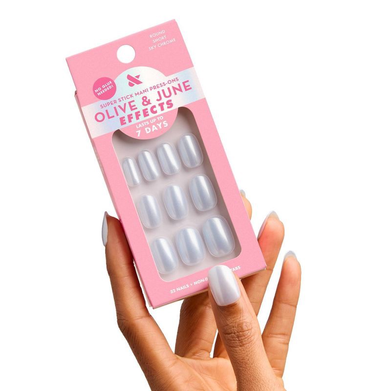 Olive & June Press-On Fake Nails - Effects Tabs - S Round - Sky Chrome - 32ct