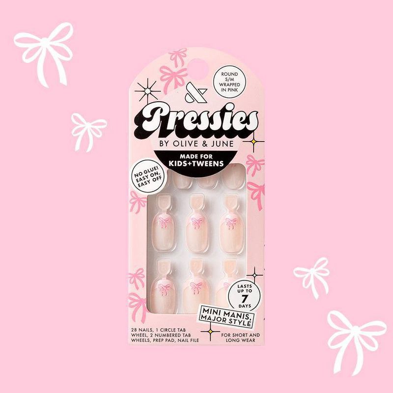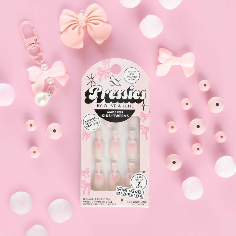 Olive & June Kids' Press-On - S/M - Wrapped in Pink - 28ct