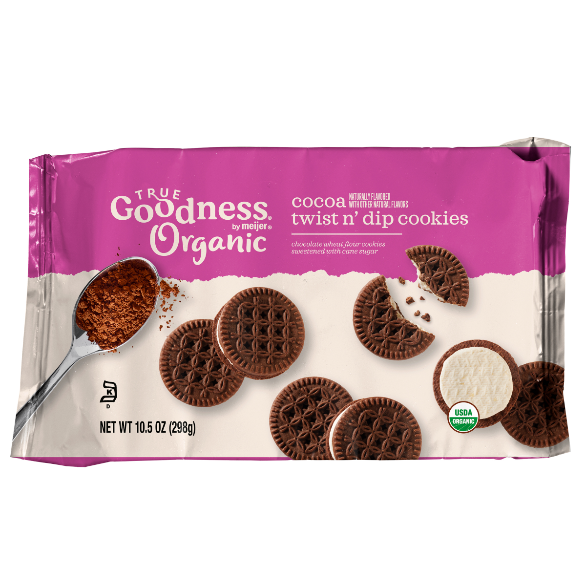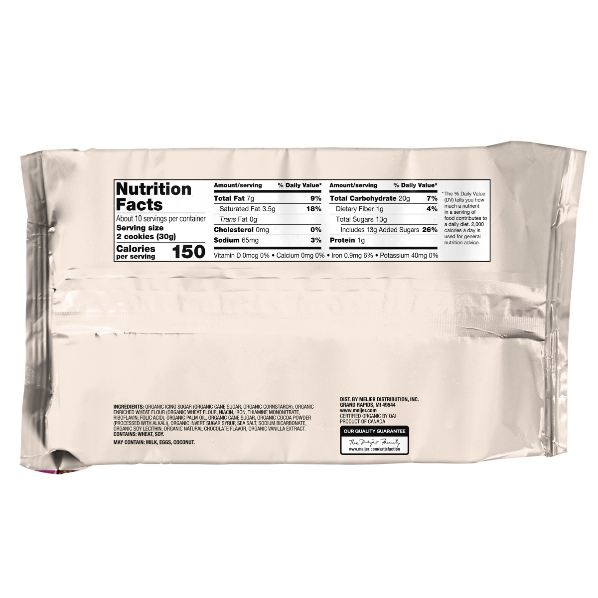 chocolate wheat flour cookies with a smooth vanilla flavored filling, sweetened with cane sugar