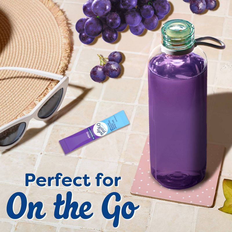 - DRINK PACKETS: One 1.1 oz box that contains ten 0.11-ounce packets of Crystal Light Grape Natural Flavor With Other Natural Flavor On-the-Go Powdered Drink Mix with Caffeine