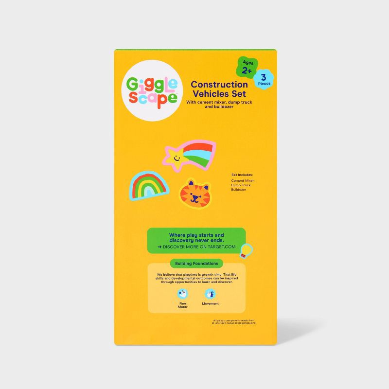 Construction Vehicles Set - 3pk - Gigglescape™: Plastic Toy Vehicle Playsets, Truck, Ages 2+