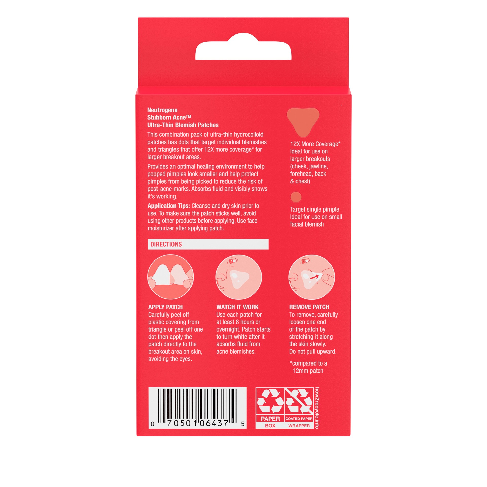 Neutrogena Stubborn Acne Ultra-Thin Blemish Patches are designed for acne-prone skin. These hydrocolloid patches help flatten the appearance of pimples with consistent use. These non-medicated triangl…