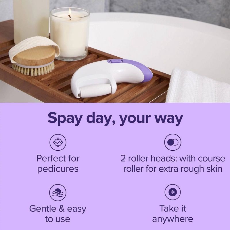 - 2 roller heads, with a coarse roller head for extra rough skin