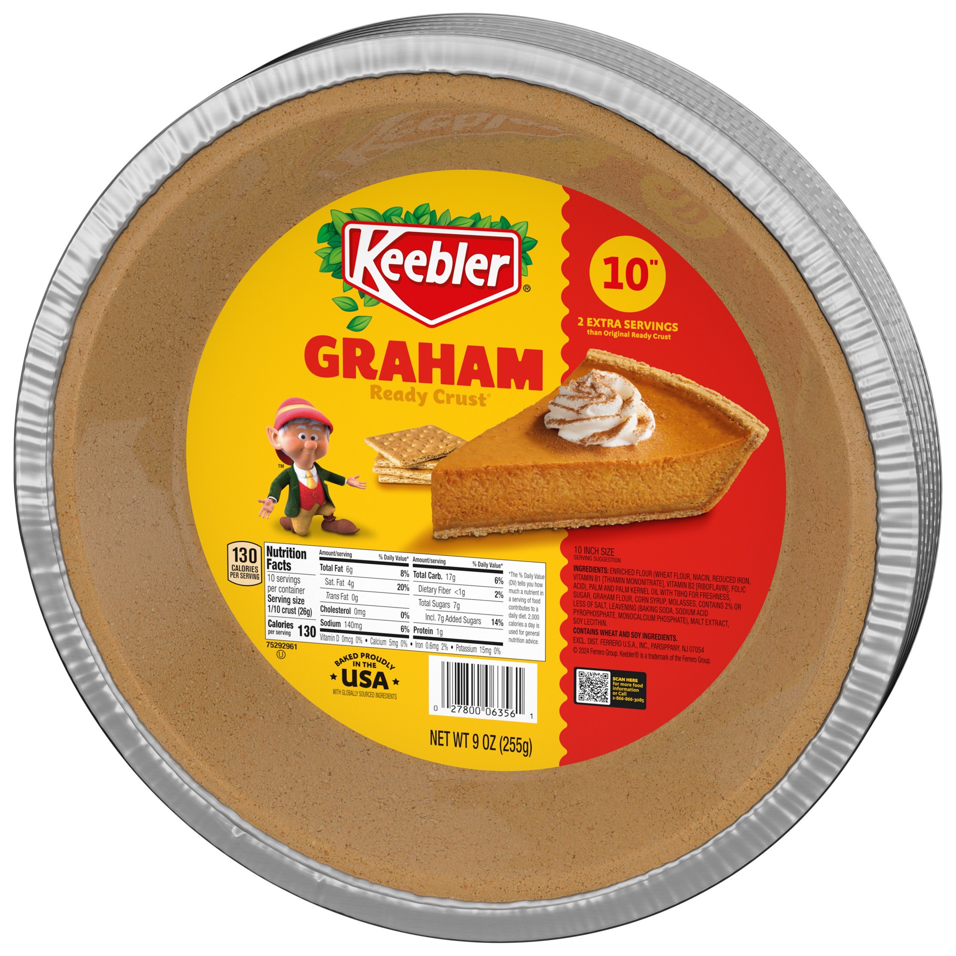 Keebler Ready Crust Graham Cracker Pie Crust Premade Pie Crust 10-Inch - 9 Oz