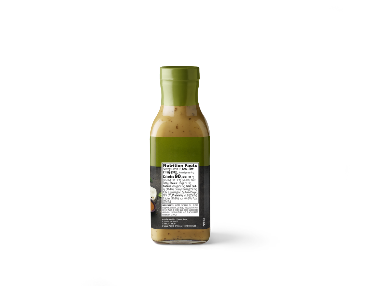 Water, Soybean Oil, Sugar, Balsamic Vinegar, Distilled Vinegar, Contains Less than 2% of: Dried Basil, Dried Garlic, Dried Oregano, Xanthan Gum, Salt, Black Pepper, Mustard Flour.