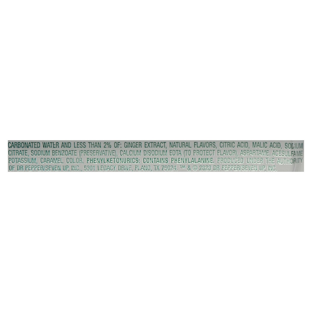 Carbonated Water and Less than 2% of: Ginger Extract, Natural Flavors, Citric Acid, Malic Acid, Sodium Citrate, Sodium Benzoate (Preservative), Calcium Disodium EDTA(to Protect Flavor), Aspartame, Aceā¦