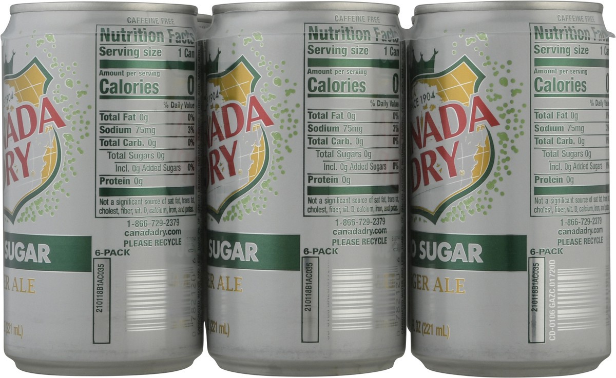 Canada Dry Zero Sugar 6 Pack Ginger Ale Ginger Ale 6 ea - 6 ct