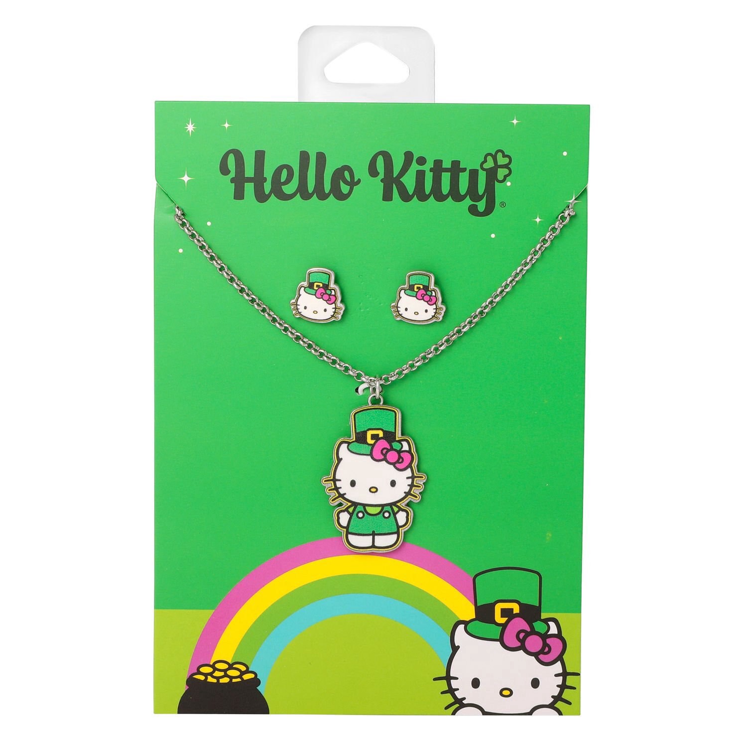 Hello Kitty St. Patrick's Day Necklace & Stud Earring Set