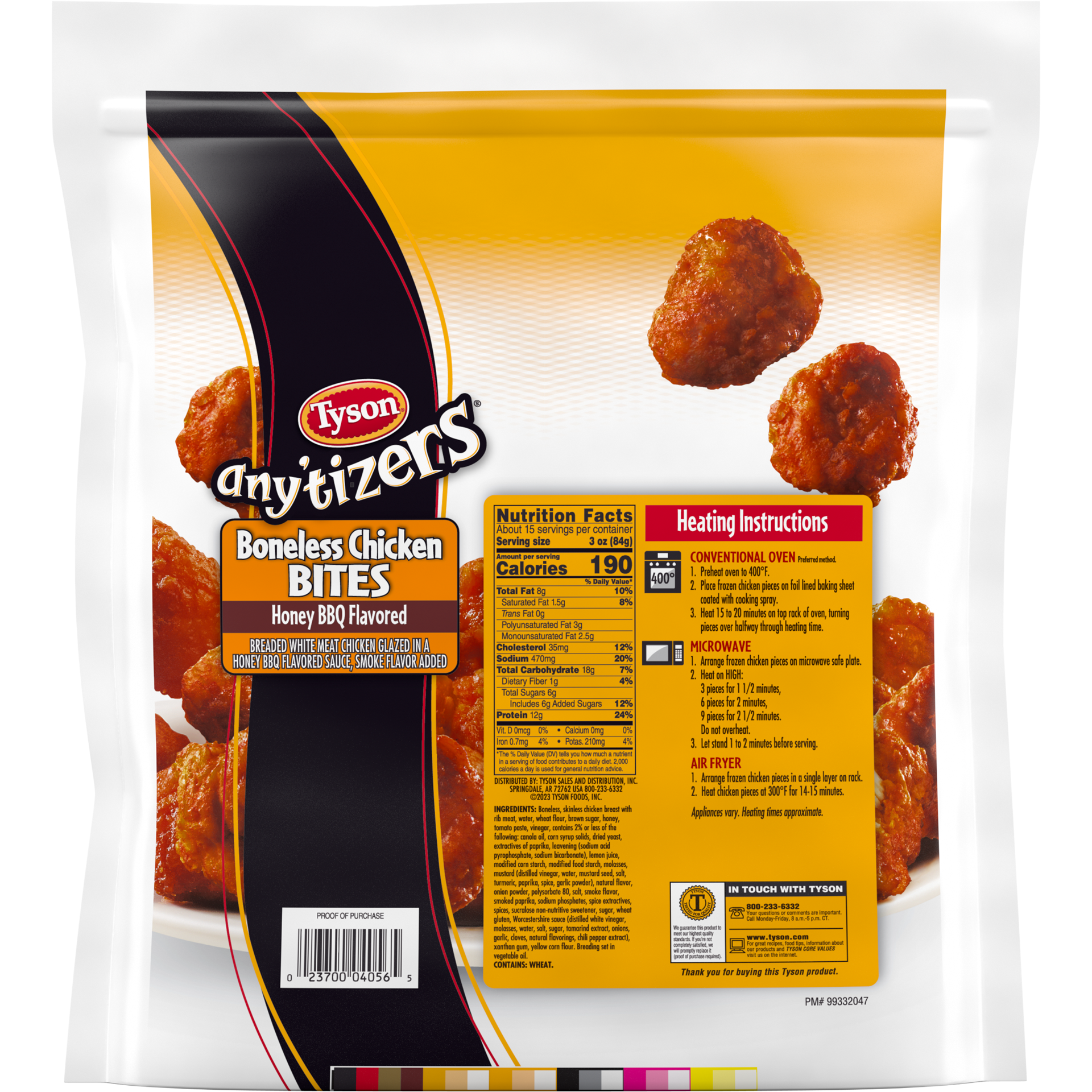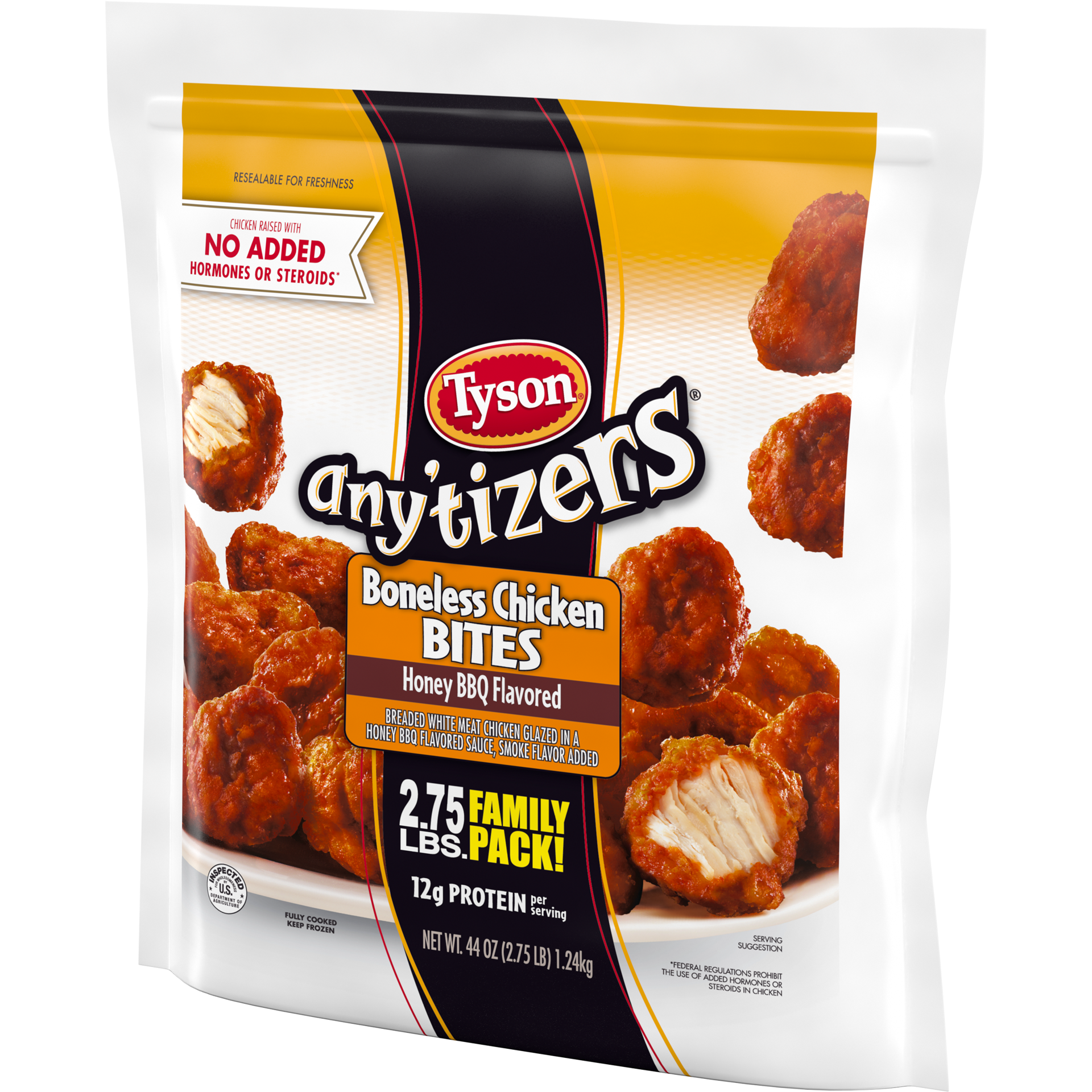 Tame your next snack attack with Tyson Any'tizers Frozen Honey BBQ Bites Family Pack. A sweet, smoky treat for your taste buds, these juicy bites are ready to be dipped, dunked or chopped to satisfy a…