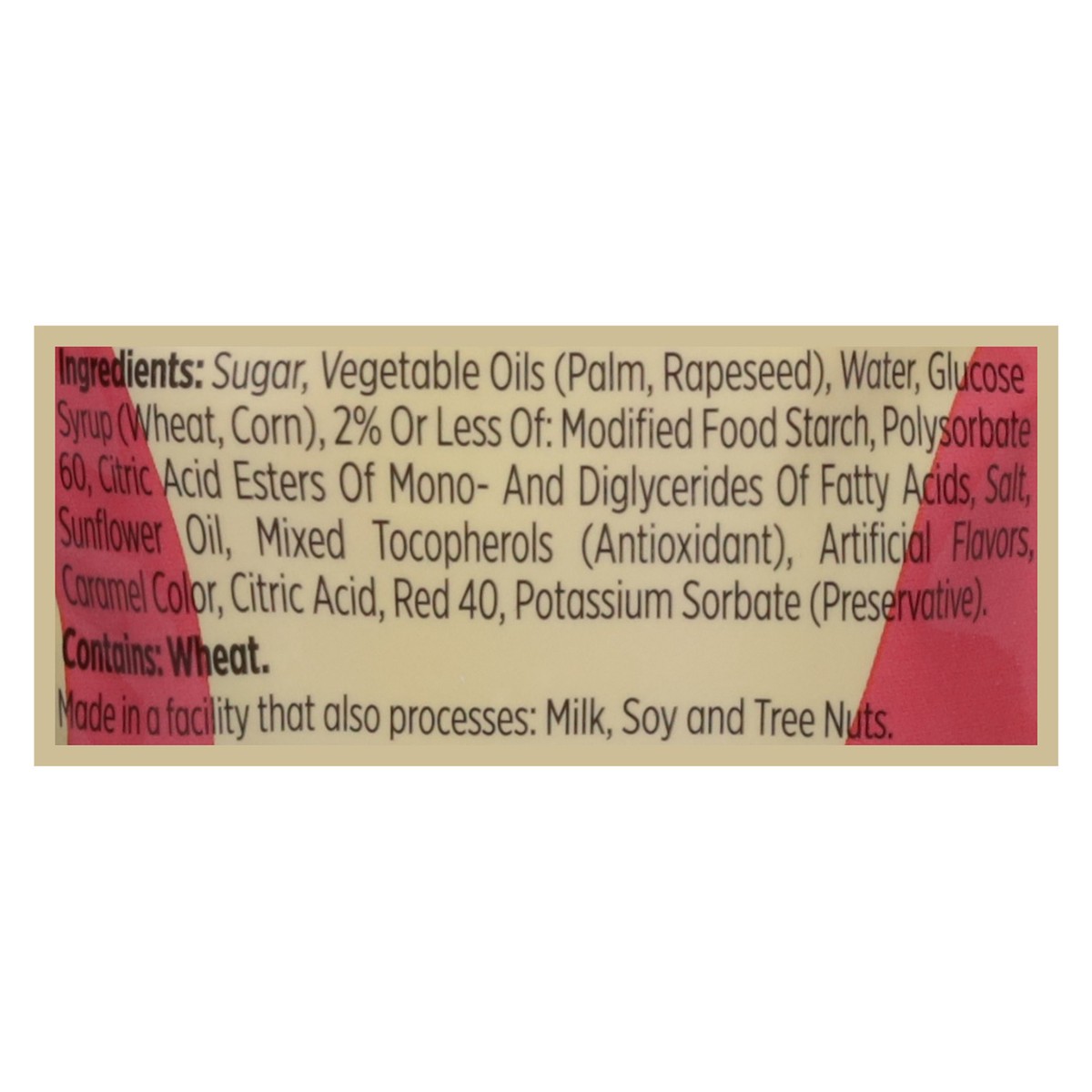 Sugar, Vegetable Oils (Palm, Rapeseed), Water, Glucose Syrup (Wheat, Corn), 2% or Less of: Modified Food Starch, Polysorbate 60, Citric Acid Esters of Mono- and Diglycerides of Fatty Acids, Salt, Sunf…