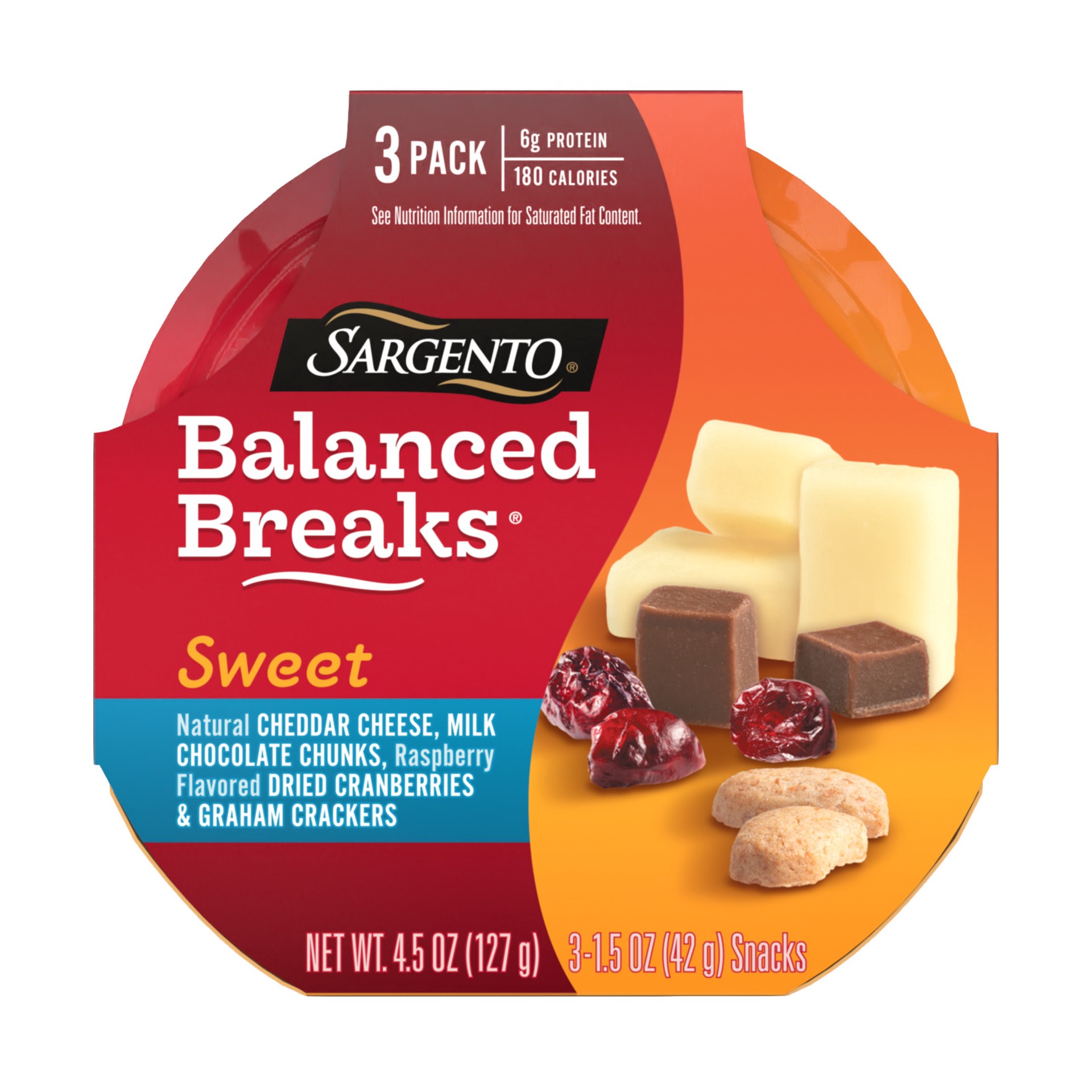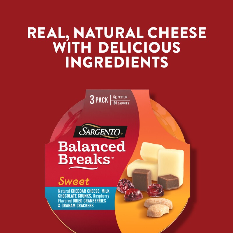 Sargento Sweet Balanced Breaks Natural Cheddar Cheese, Milk Chocolate Chunks, Raspberry Flavored Dried Cranberries and Graham Crackers Snack Kit, 3-Pack, 1.5 oz
