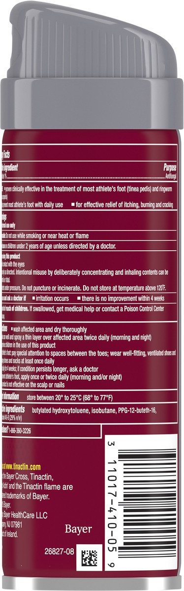 Active Ingredients: Tolnaftate (1 %), Antifungal. Inactive Ingredients: Butylated Hydroxytoluene, Isobutane, PPG-12-Buteth-16, SD alcohol 40-B (29% v/v).