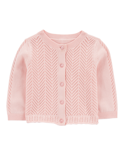 Oshkosh Baby Pointelle Button-Front Sweater Knit Cardigan Pink 24M