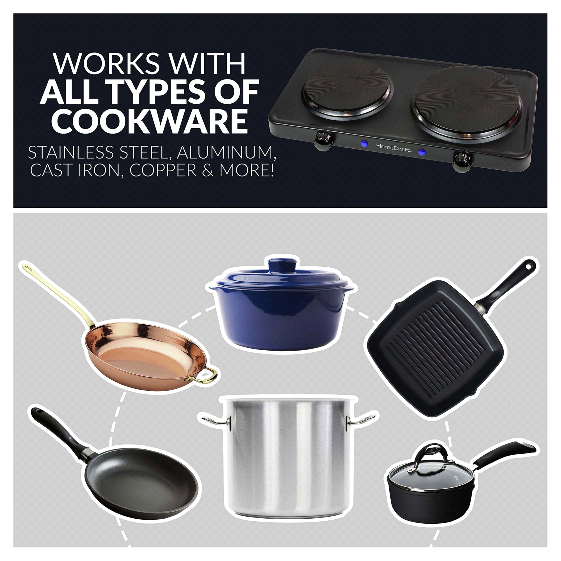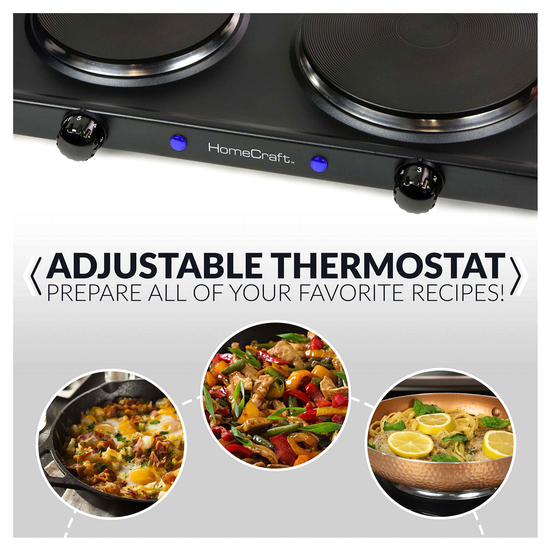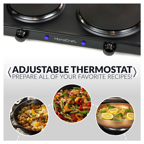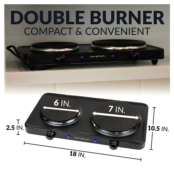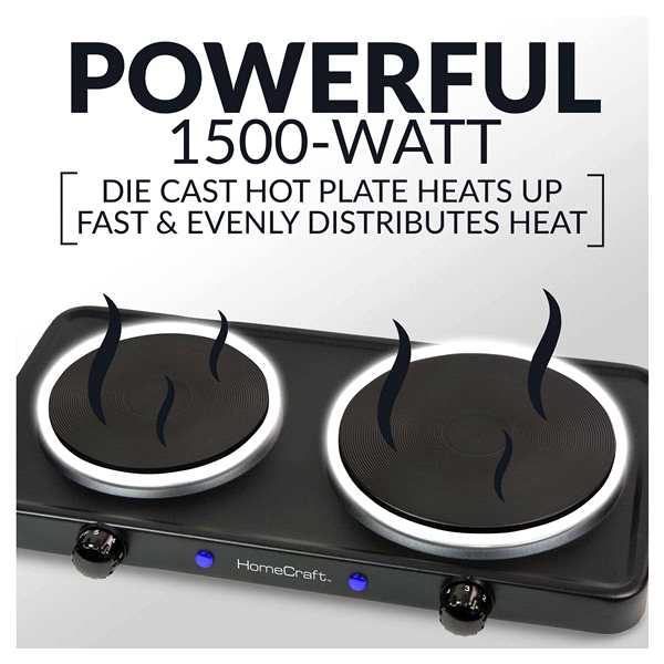This HomeCraft Double Burner Hot Plate offers the ultimate flexibility for cooking allowing you to add two burners to your kitchen or gives you the option to cook on the go This double burner feature…