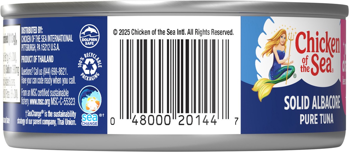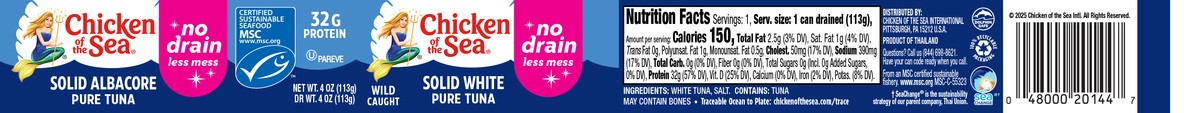 Chicken of the Sea Solid White Pure Albacore MSC Tuna, No Drain 4 oz