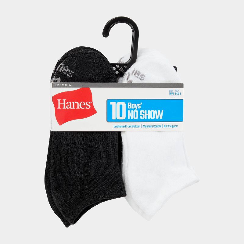 Hanes Boys' 10pk Premium No Show Socks - Black/White M