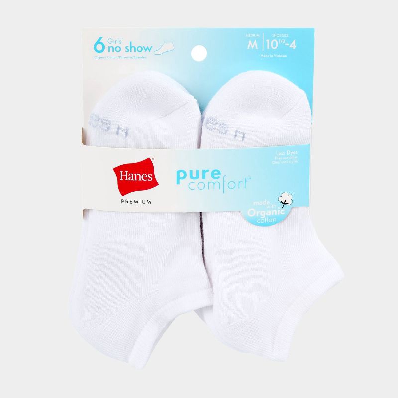 Hanes Girls' 6pk Pure Comfort No Show Socks White S