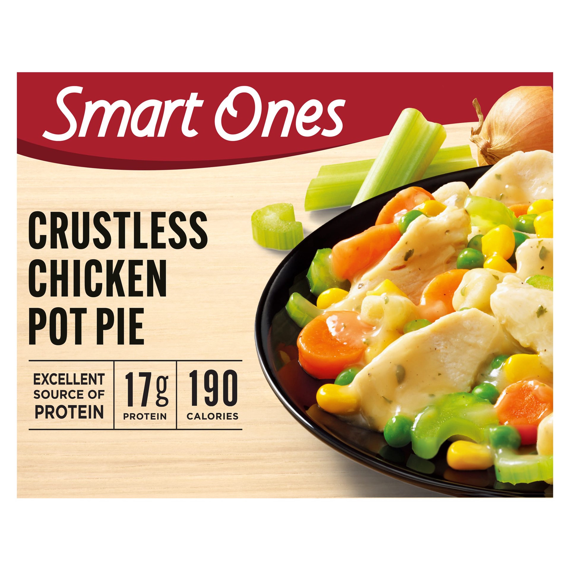 The easy way to make deliciously smart choices. Smart Ones Crustless Chicken Pot Pie offers a quick meal solution for lunch or dinner. Our comfort food features premium white meat chicken with a mix o…