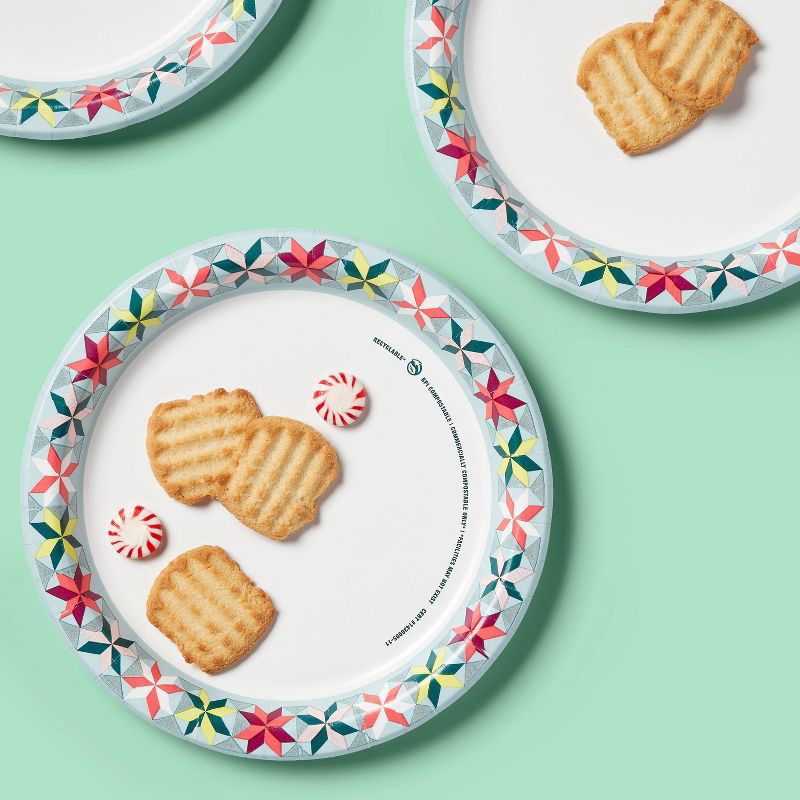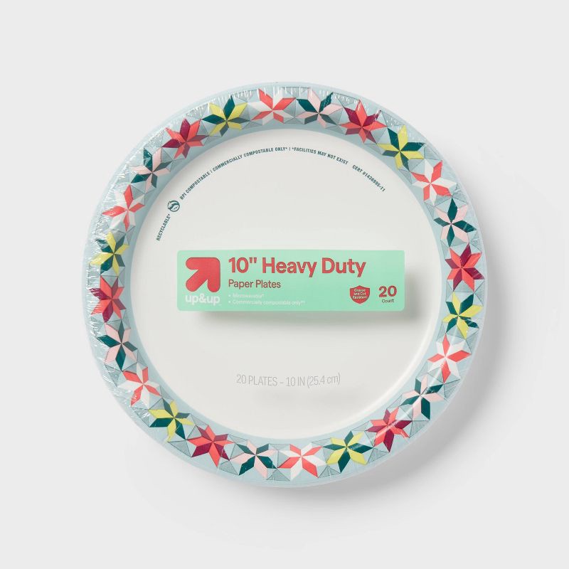 These host-friendly Holiday Disposable 10-Inch Dinner Plates from up&up™ give hosts more time to celebrate the season by taking less time to clean up. The package contains 20 round paper plates made o…