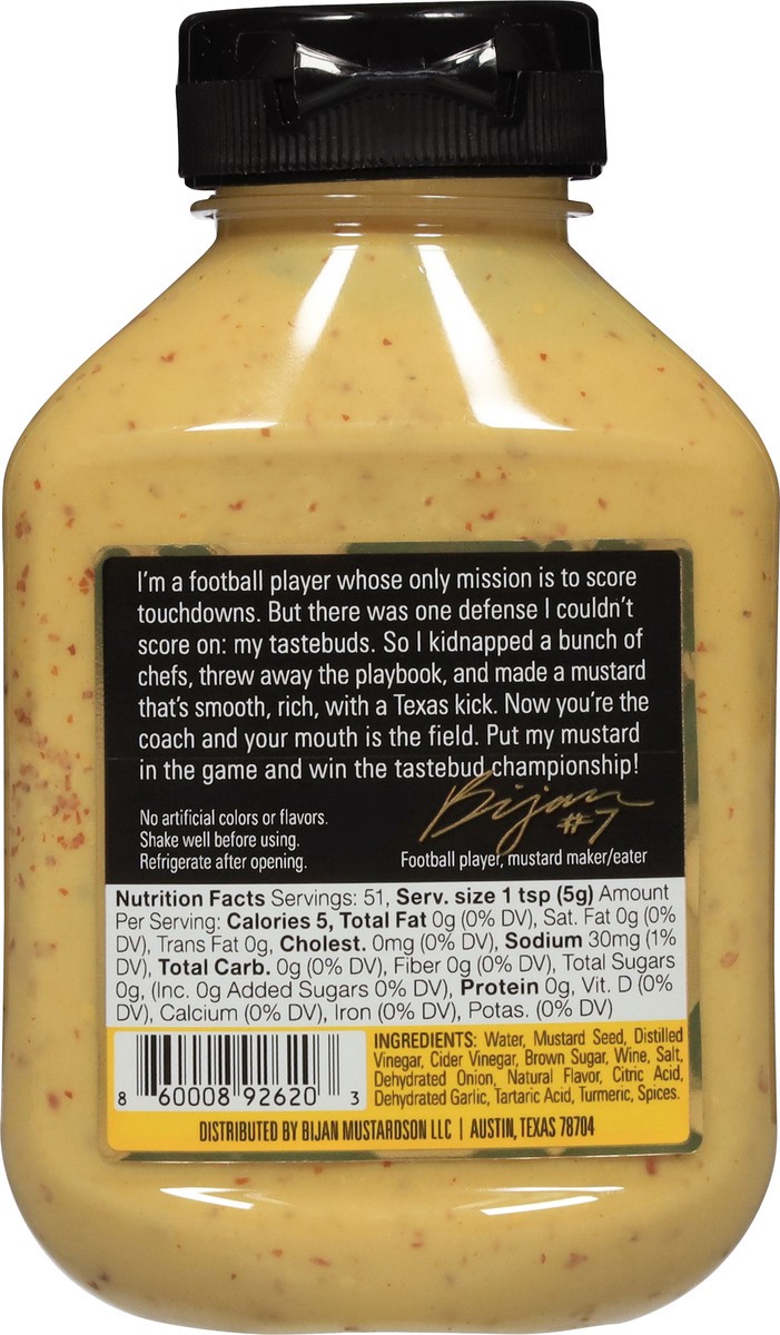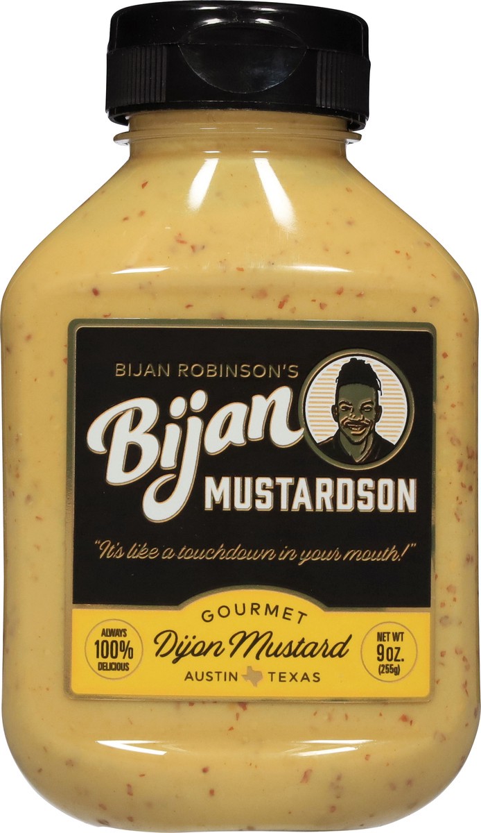Bijan Mustardson is Bijan’s signature gourmet Dijon mustard. It’s smooth and rich with a Texas kick. And as far as types go, it's also the delicious type. Bijan Mustardson is best served among hot dog…