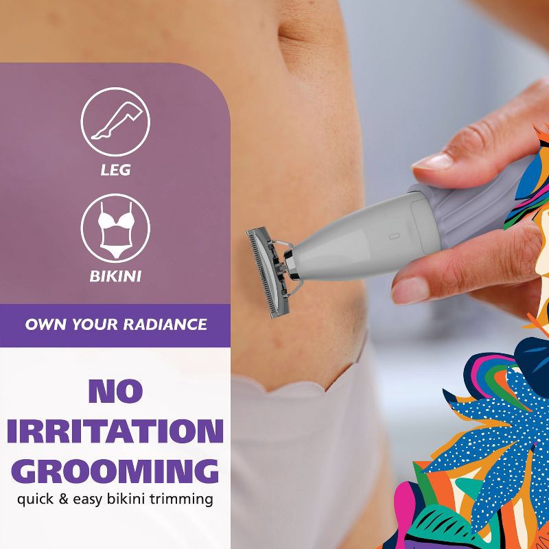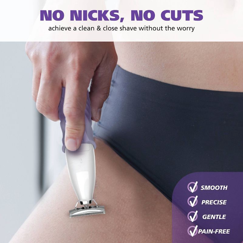 - NO IRRITATION, BIKINI TRIMMER: A flat head electric razor for women designed for quick and easy bikini line grooming without the need for water or a shower. Achieve a close irritation-free shave without nicks, and razor burn.