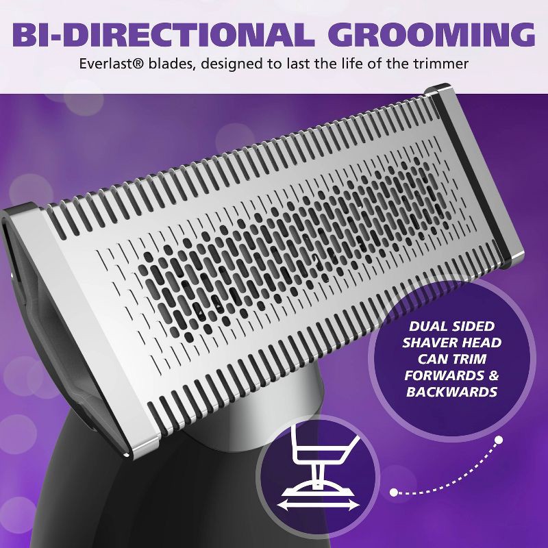 - EVERLAST BI-DIRECTIONAL BLADES: Engineered to last for the life of the shaver, delivering consistent performance without the need for blade replacements. The flat double-sided precision trimmer head design allows you to get a skin-close trim from any angle, forward or backward.