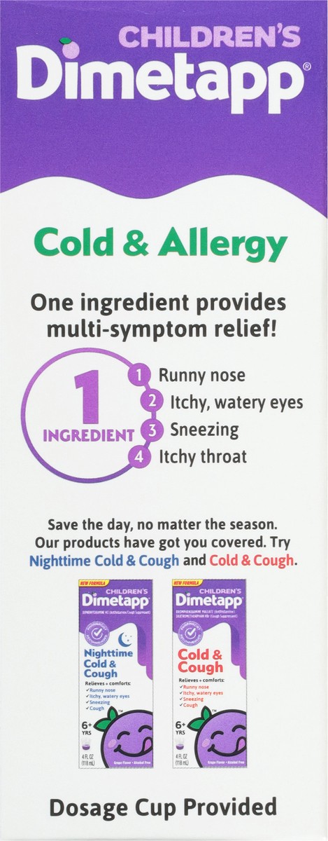 Children''s Dimetapp is phenylephrine-free and formulated to tackle the ickiest cold and allergy symptoms: itchy, watery eyes, itchy throat, runny nose, and sneezing. As the #1 most trusted children's…