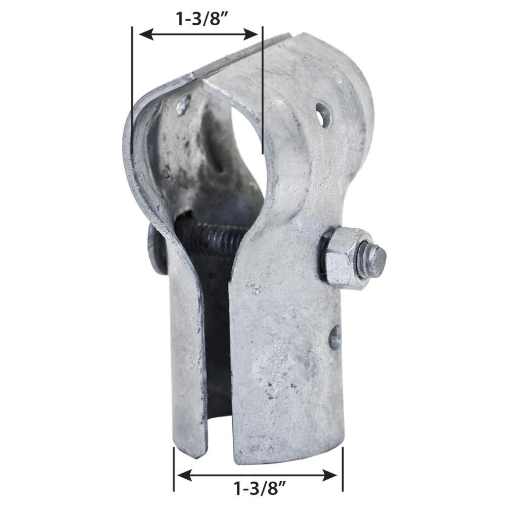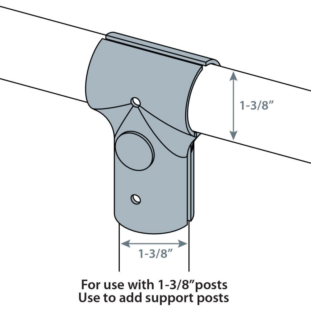 Connects intersecting 1-3/8in pipe at right angles. Includes nut and bolt. Galvanized for long life. Use to add additional rails for strength.